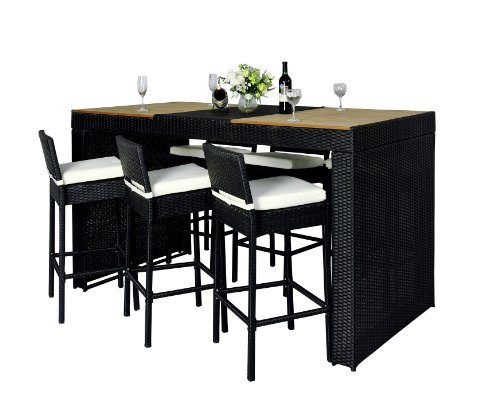 - Polyrattanset bestehend aus 1 Bar-Tisch mit 2 Holzplatten und 6 Barstühle inklusive Kissen!